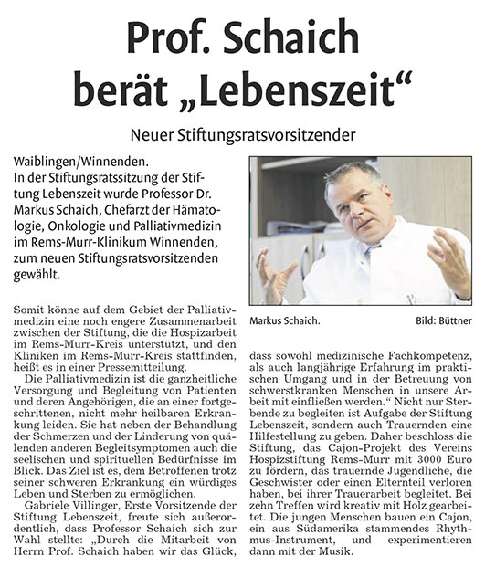 Prof. Schaich berät "Lebenszeit"