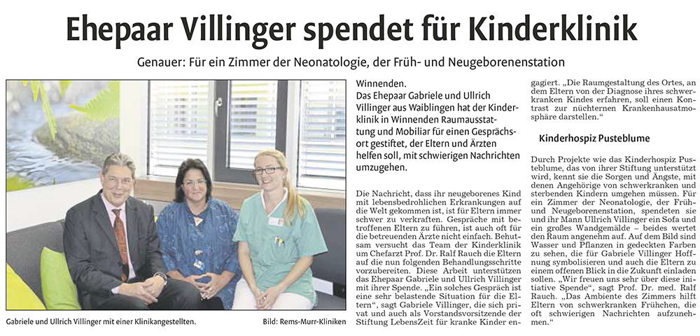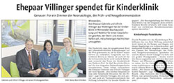 Ehepaar Villinger spendet für Kinderklinik