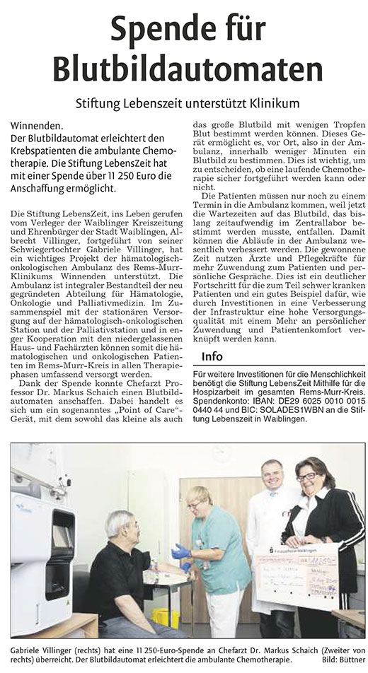 Spende für Blutbildautomaten