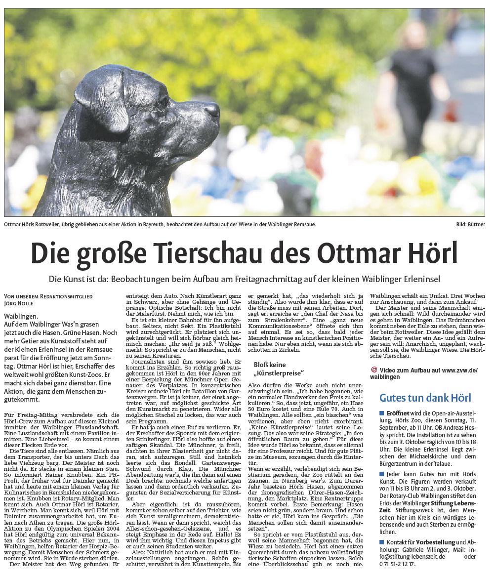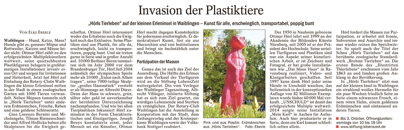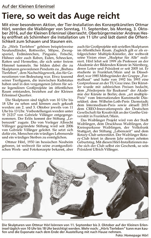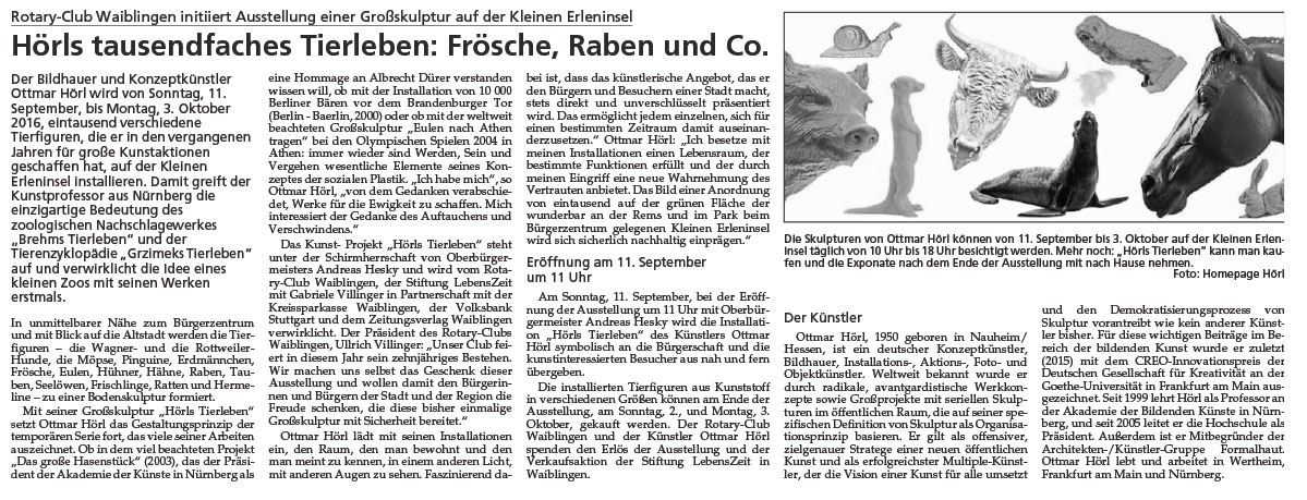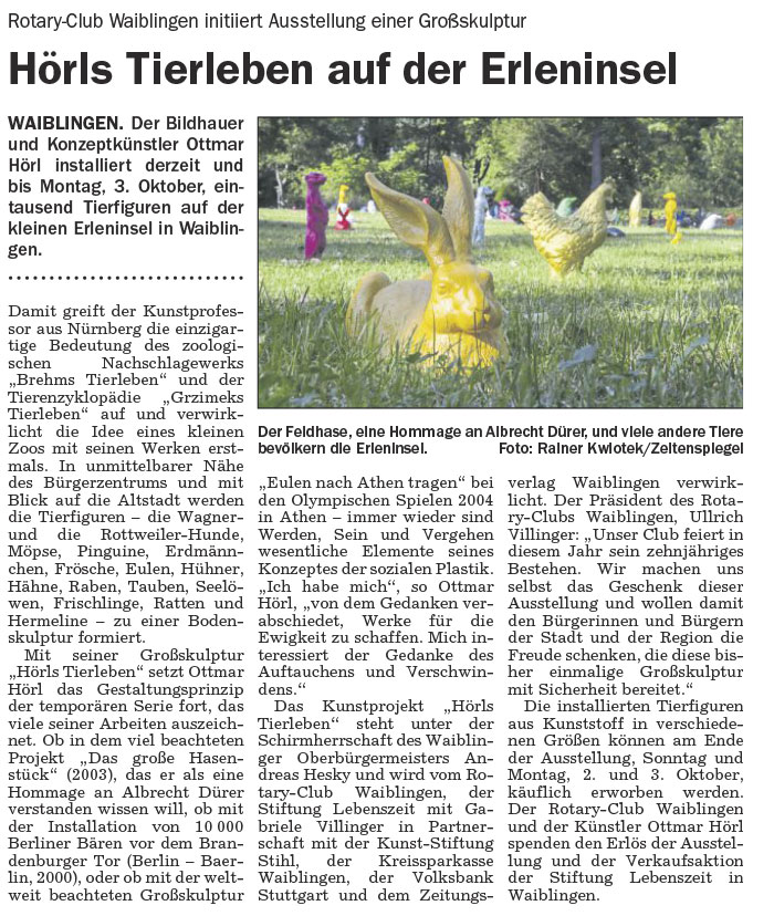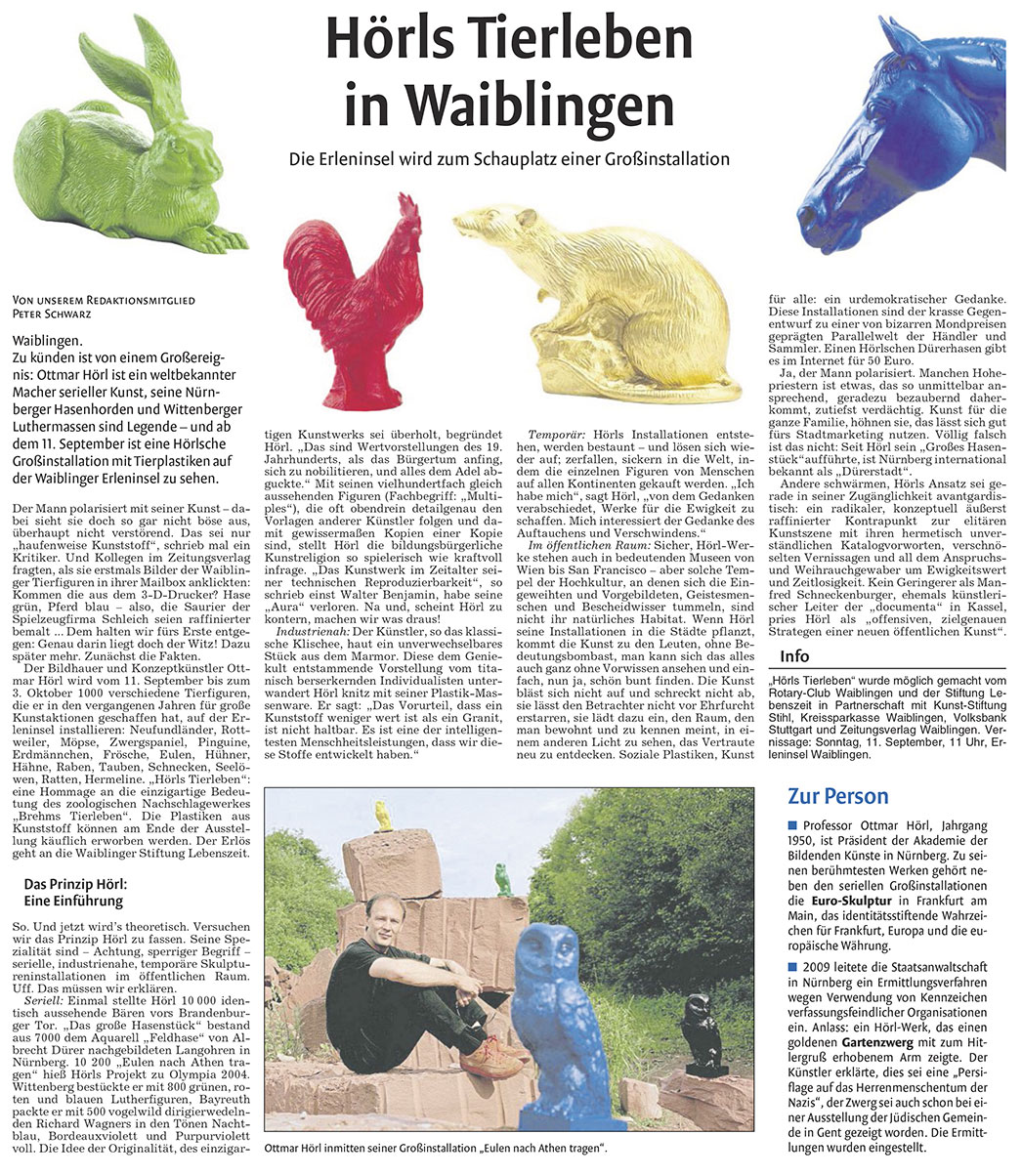 Rotary-Club Waiblingen initiiert Ausstellung einer Großskulptur auf der Kleinen Erleninsel